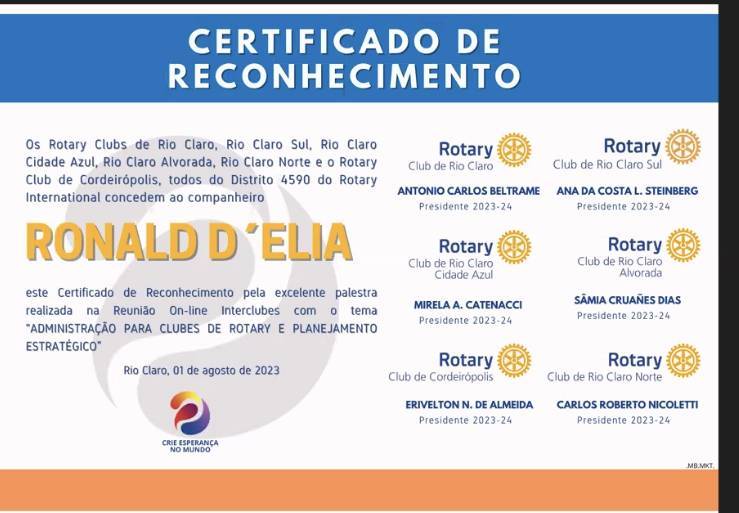 Postado em: 01 de Agosto de 2023 por Rotary Club de Rio Claro - Norte